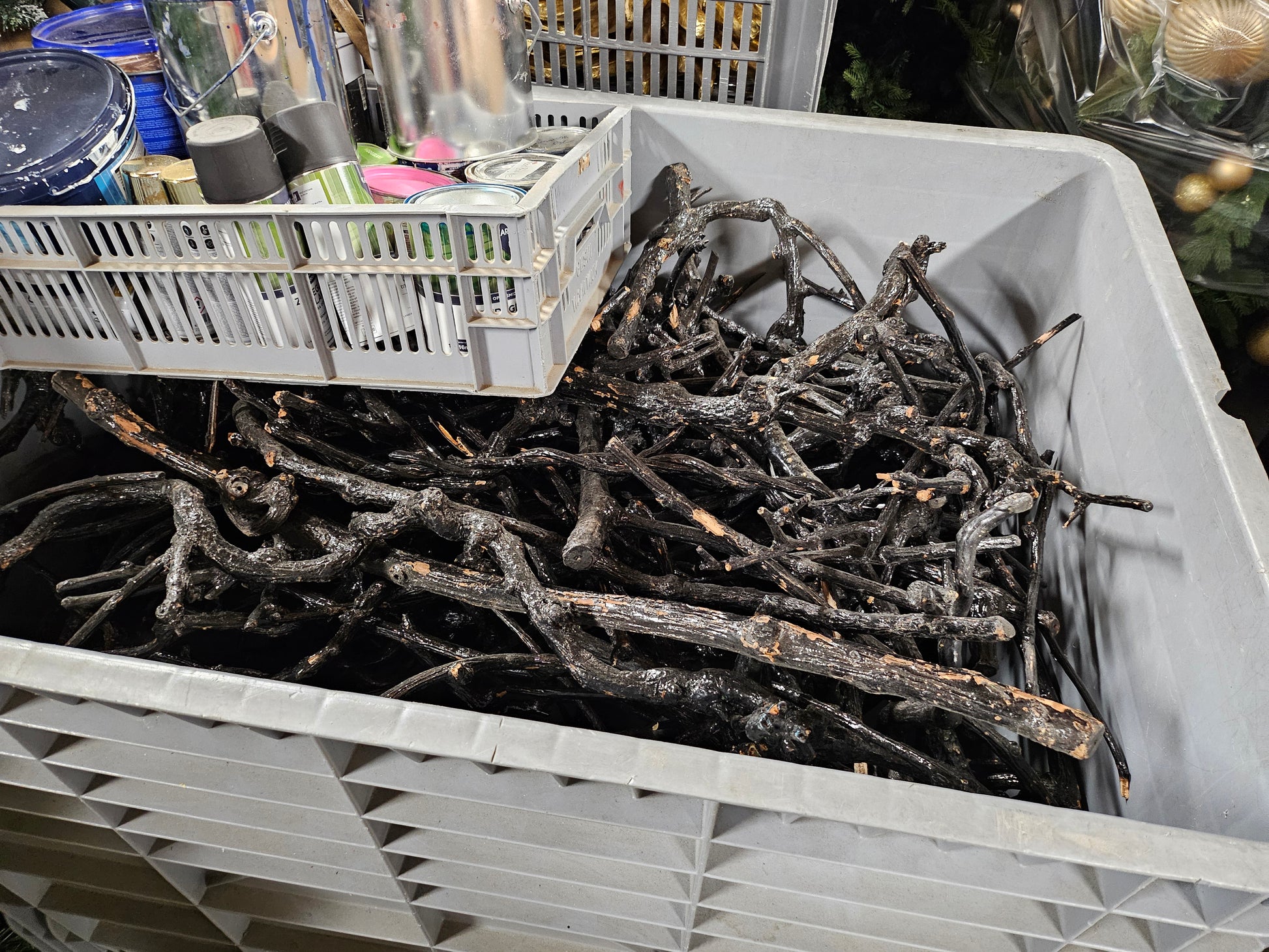 Decoratie takken zwart inclusief kunststof container met wielen en rem