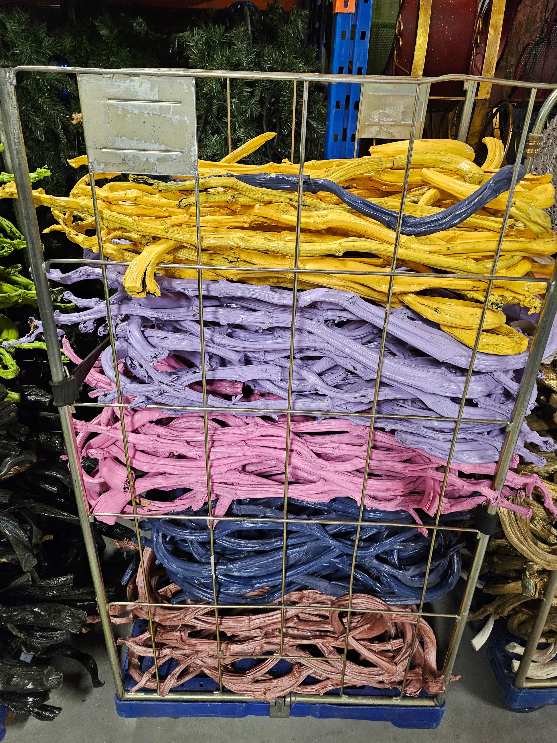 Diverse decoratie takken in diverse kleuren zoals afbeelding inclusief rolcontainer.