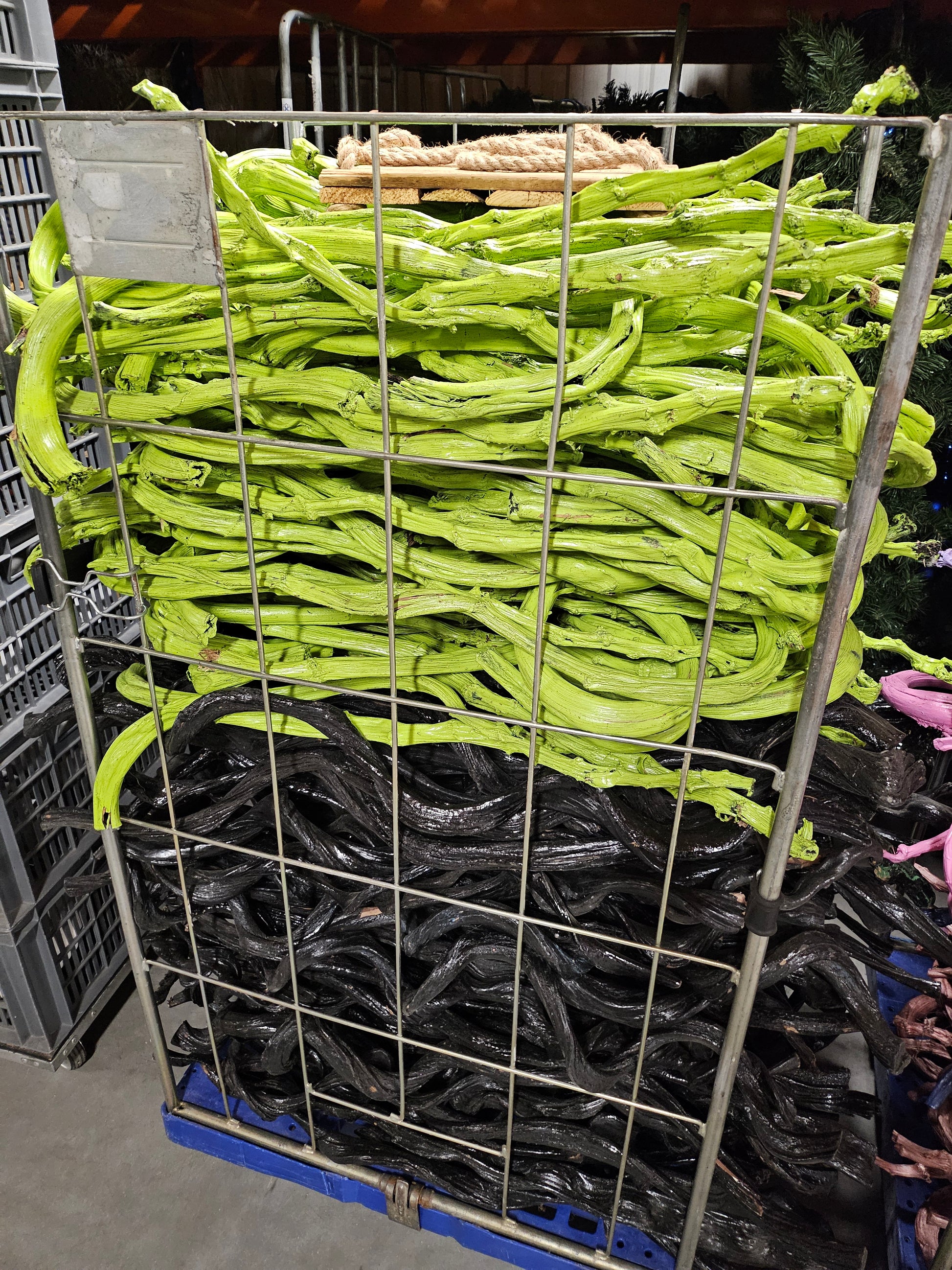 Diverse decoratie takken in diverse kleuren zoals afbeelding inclusief rolcontainer.